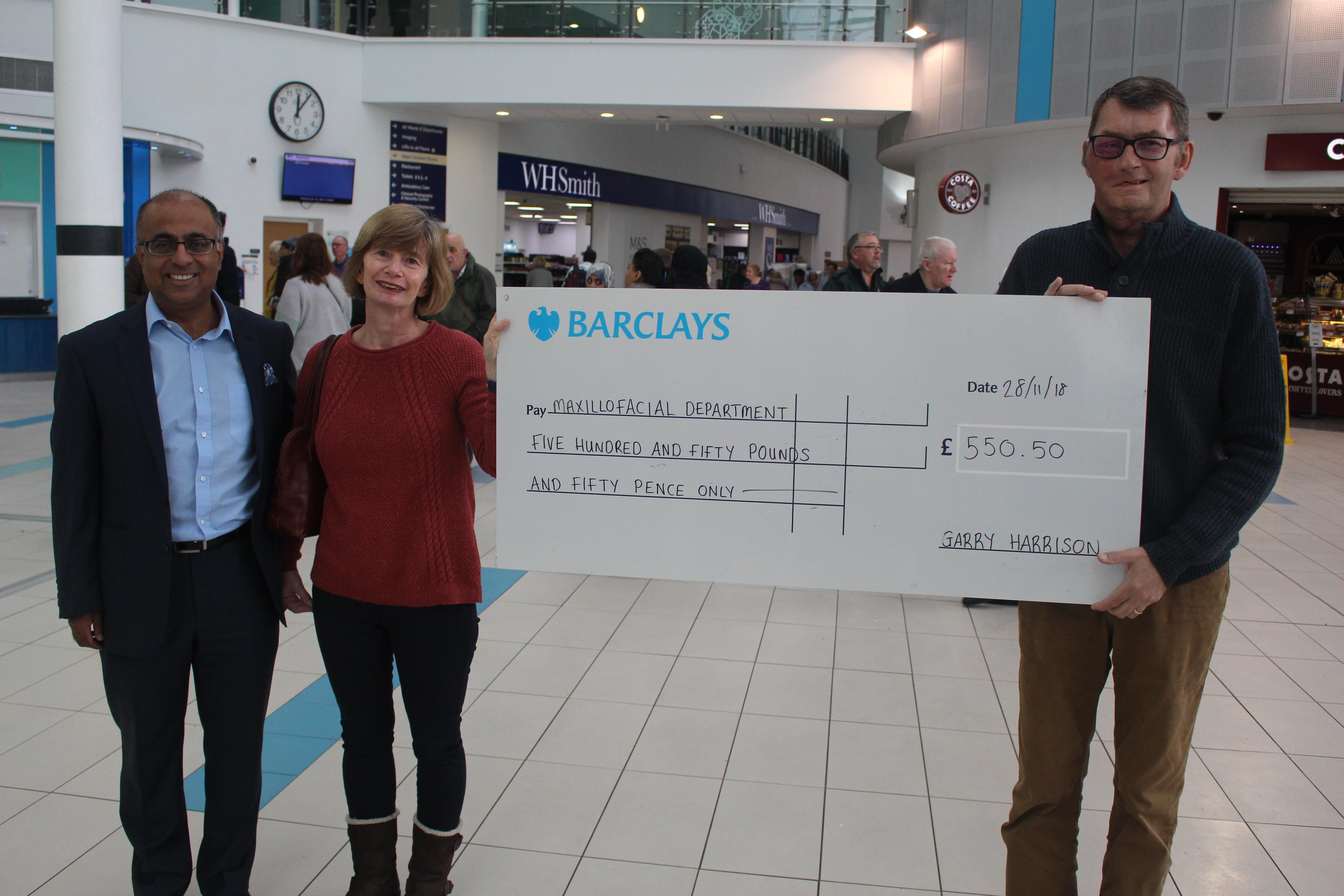 Garry Harrison decided to raise money for the Maxillofacial Department at QEHB after he had three operations on his head and neck after being diagnosed with cancer.
