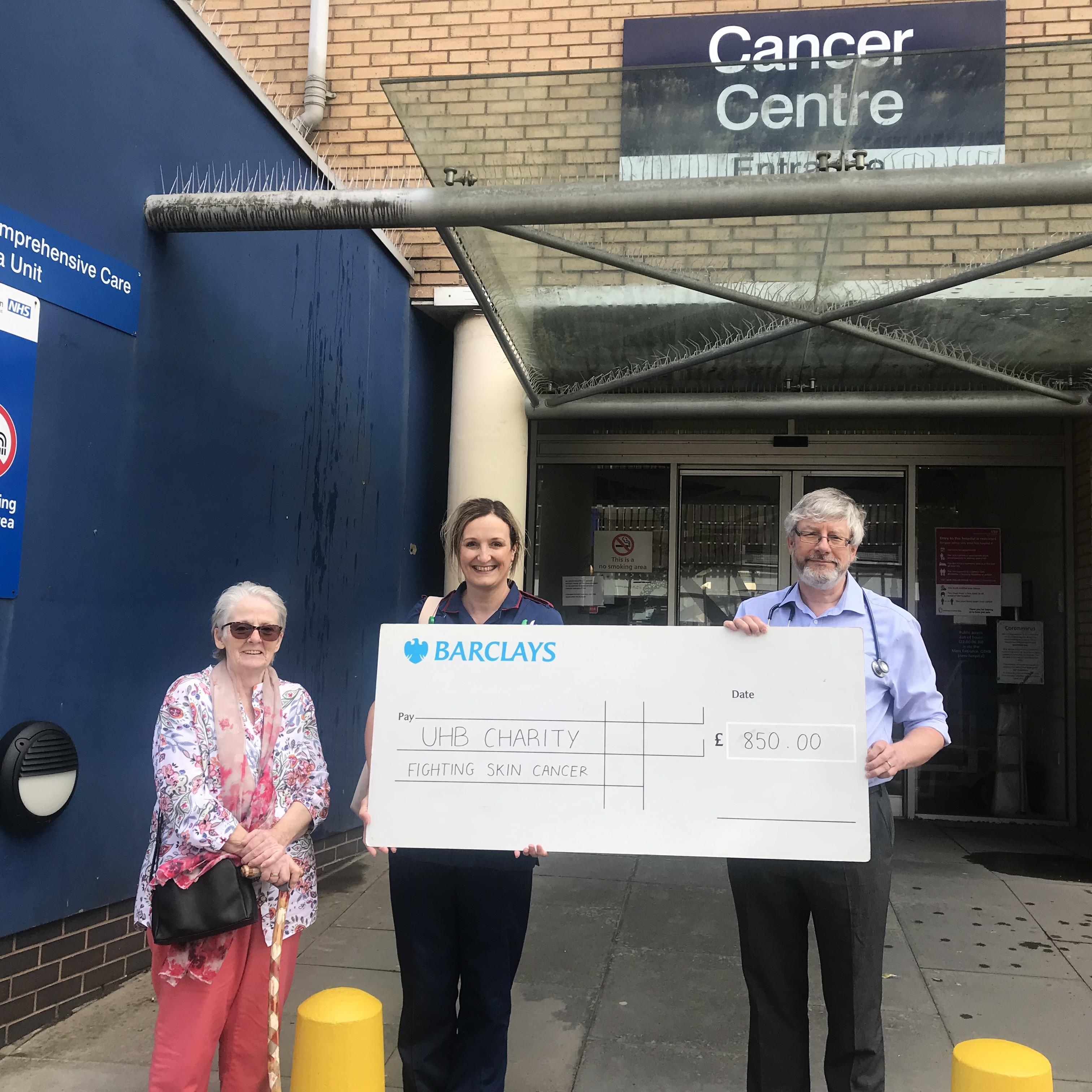 Barbra Farr incredibly raised and donated a fantastic sum of £1,000 for UHB Fighting Skin Cancer Fund, in memory of her husband.
