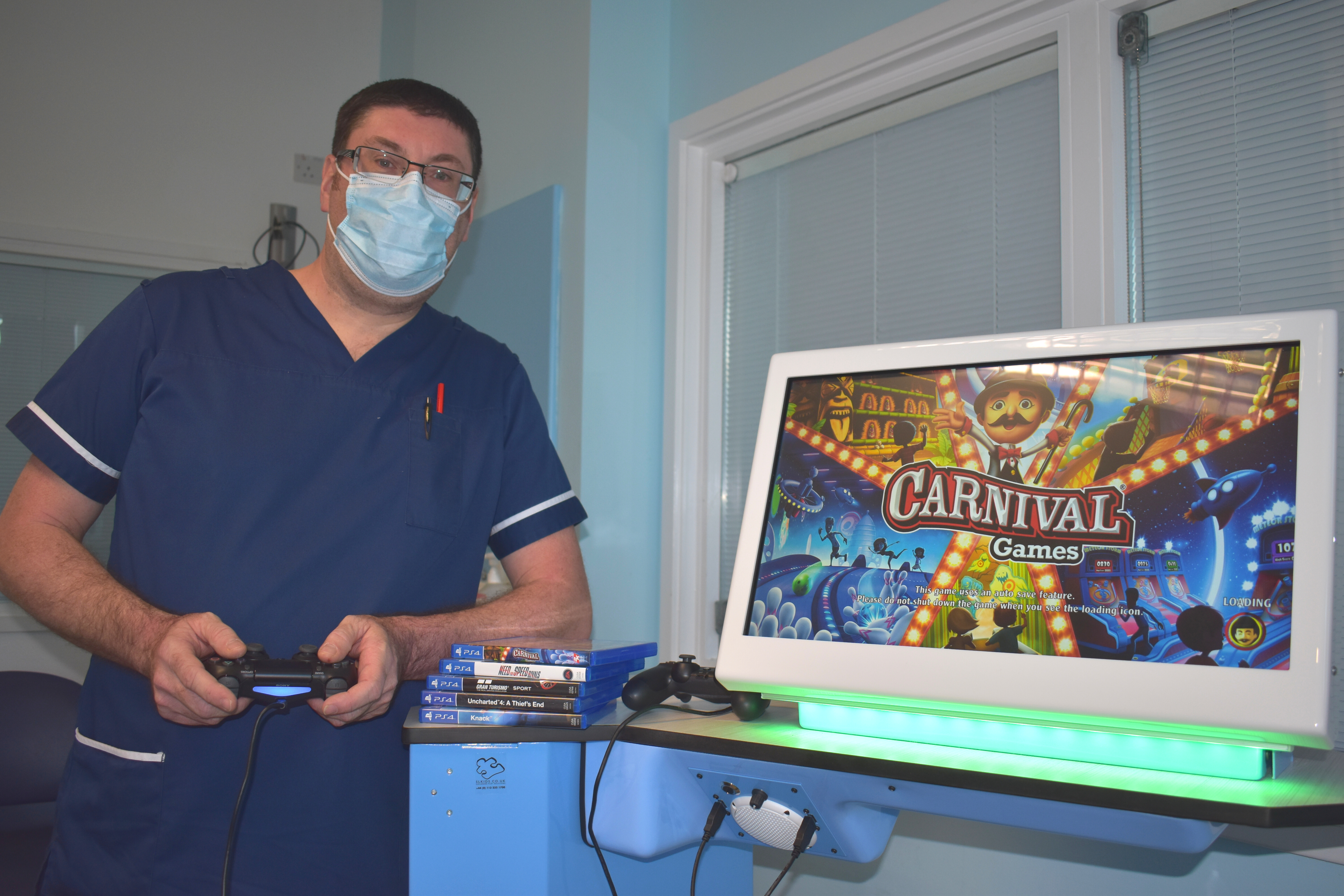 The GameStation Move is an all-in-one unit complete with a PlayStation 4, monitor, lights and sound that allows staff on the ward to move the unit to where it is needed quickly and easily, whilst meeting the really important infection control and safety criteria.