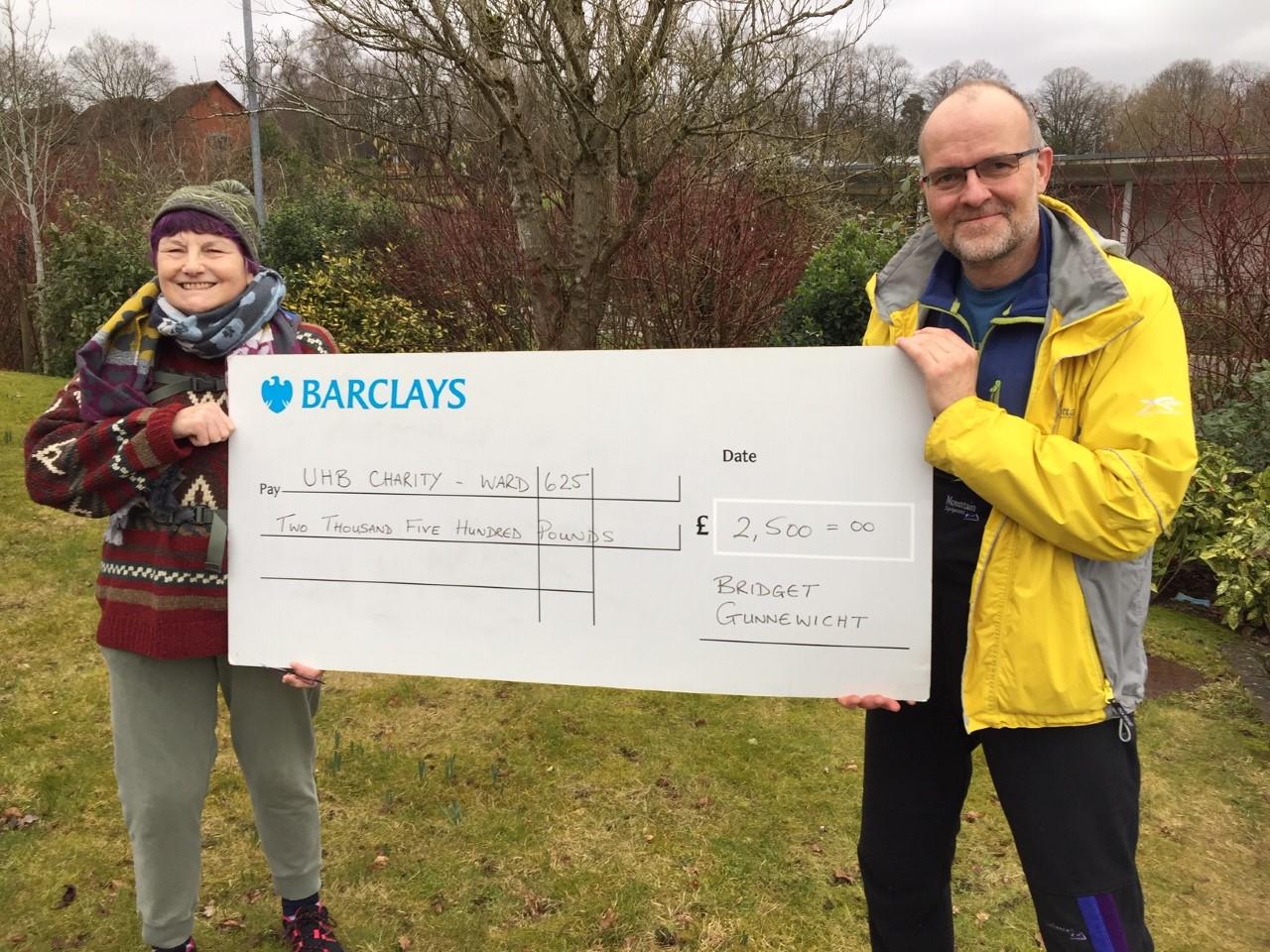 Bridget decided she wanted to give back to Ward 625 at QEHB after the wonderful care she received. As walking is one of Bridget’s favourite pastimes, she decided to take on the Country Walking Magazine challenge to walk 1,000 miles in a year. Bridget’s medical team encouraged her passion for walking to help with some of the symptoms, whilst her partner, Martin, always encouraged her to get her boots on and get out the door.