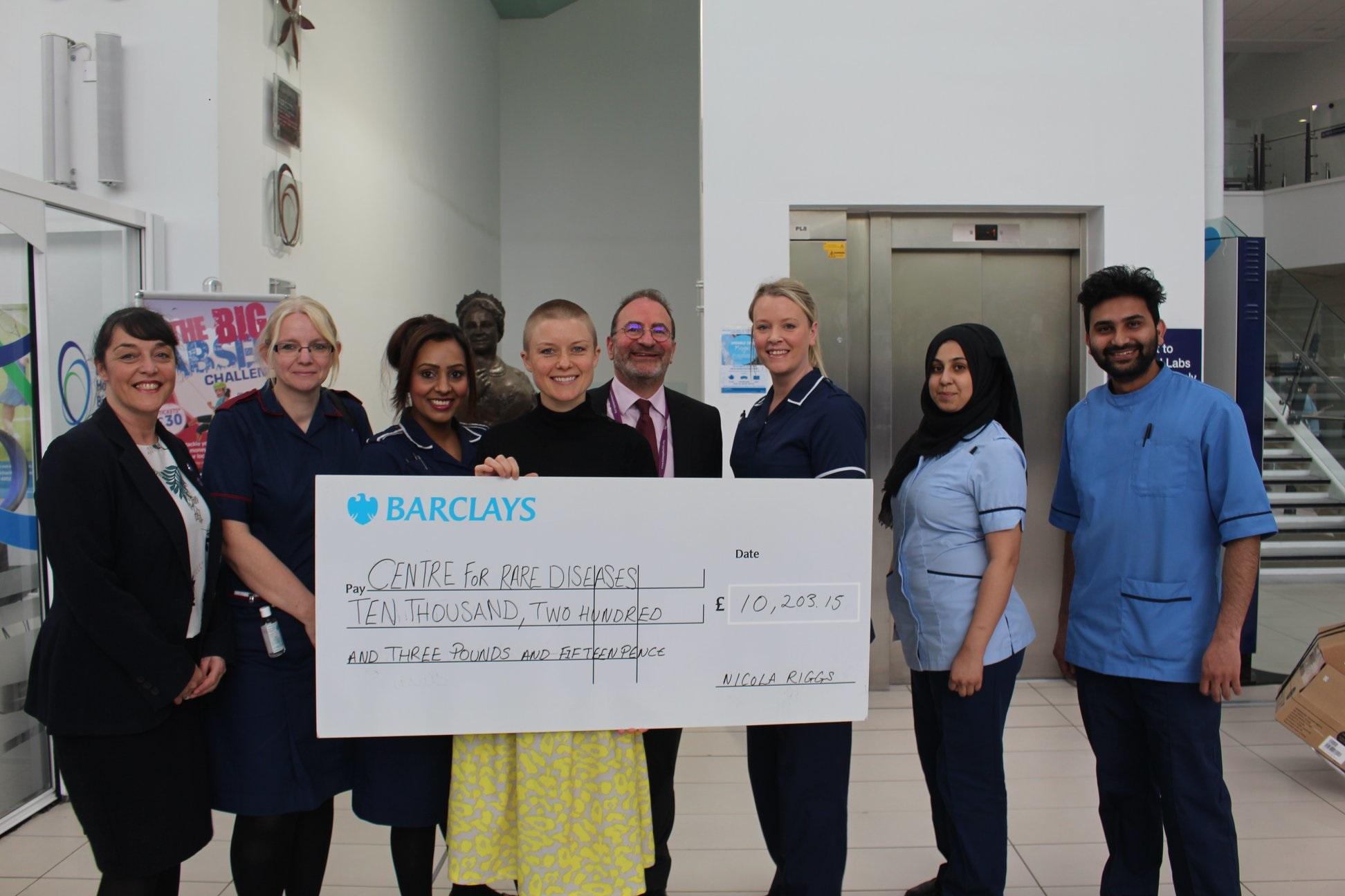 Today, the hospital charity met up with the amazing Nicola Riggs for a cheque presentation. Nicola was joined by the team from the Centre for Rare Diseases at the Queen Elizabeth Hospital Birmingham. Nicola’s entire donation will greatly aid in the team’s research into Primary Hyperoxaluria.
