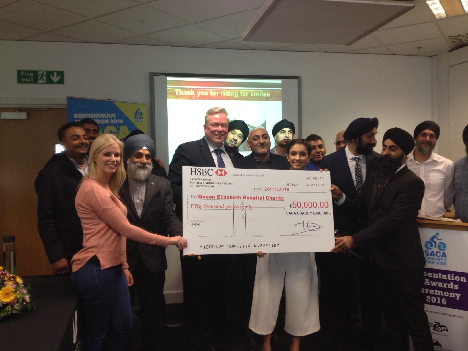 On Saturday 26 November, Mike Hammond, Chief Executive of QEHB Charity, went to London for the final cheque presentation and awards ceremony. The afternoon was attended by SACA organiser’s, fundraisers and riders and recognised all of the hard work put into making the ride a massive success over the past 12 months.